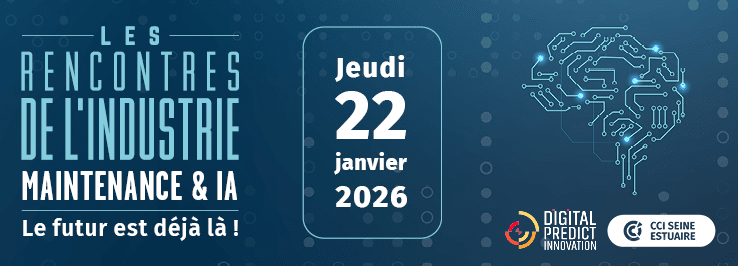 La CCI Seine Estuaire et Digital Predict Innovation organisent les Rencontres de l'Industrie - Maintenance & IA, le futur est déjà là ! Un événement unique dédié aux industries, mêlant conférence, ateliers et table ronde pour gagner en fiabilité, en performance et en compétitivité.
